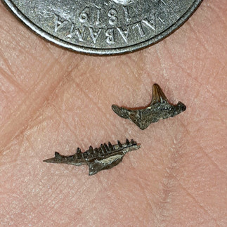 Also found some "what are they"? The first one may be a denticle, the second picture could be from a Squatina, and the third picture are jaw pieces from a lizard and fish??